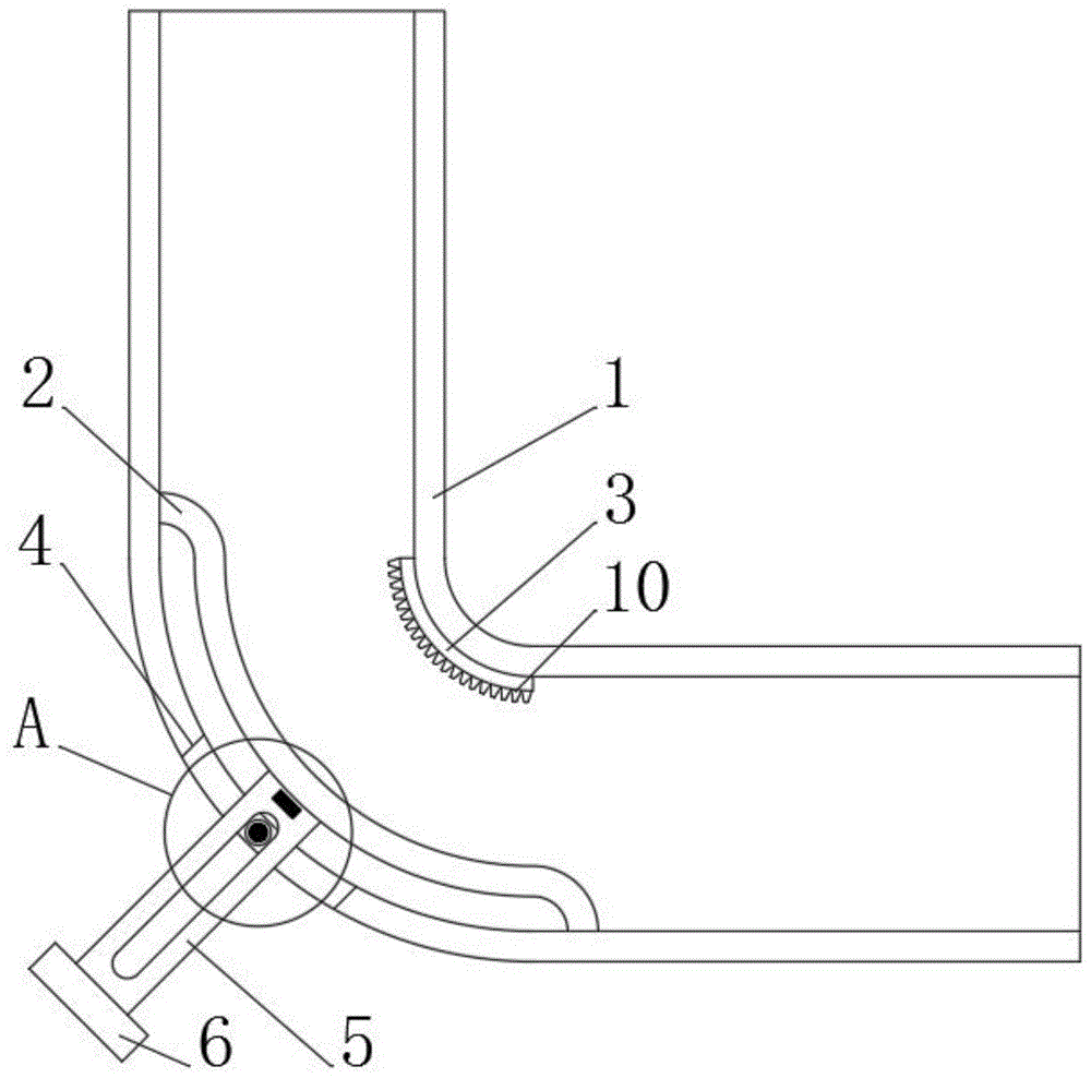 5.根據權利要求1所述的一種不易阻塞的不銹鋼管件彎頭,其特征在于:所述清洗墊(3)靠近橡膠保護墊(2)的一端固定連接有多個均勻分布的清洗齒(10)。