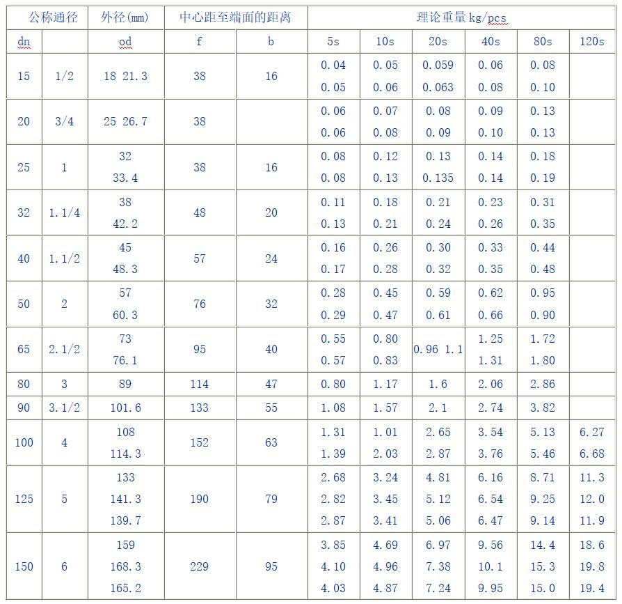 不銹鋼彎頭規(guī)格表一覽